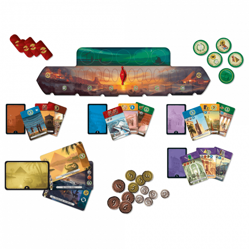 Los jugadores no toman cartas simultáneamente de los mazos de cartas, sino de una serie de cartas boca abajo y boca arriba dispuestas al comienzo de una ronda. Un jugador puede tomar una carta solo si no está cubierta por otras, por lo que el tiempo entra en juego, al igual que con los movimientos de bonificación que permiten al jugador tomar una segunda carta inmediatamente. Al igual que en el juego original, cada carta adquirida puede construirse, descartarse por monedas o usarse para construir una maravilla. Cada jugador también comienza con cuatro cartas de maravilla, y la construcción de una maravilla proporciona a su propietario una habilidad especial. Sin embargo, solo se pueden construir siete maravillas, por lo que un jugador se quedará corto.