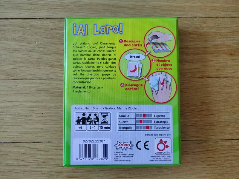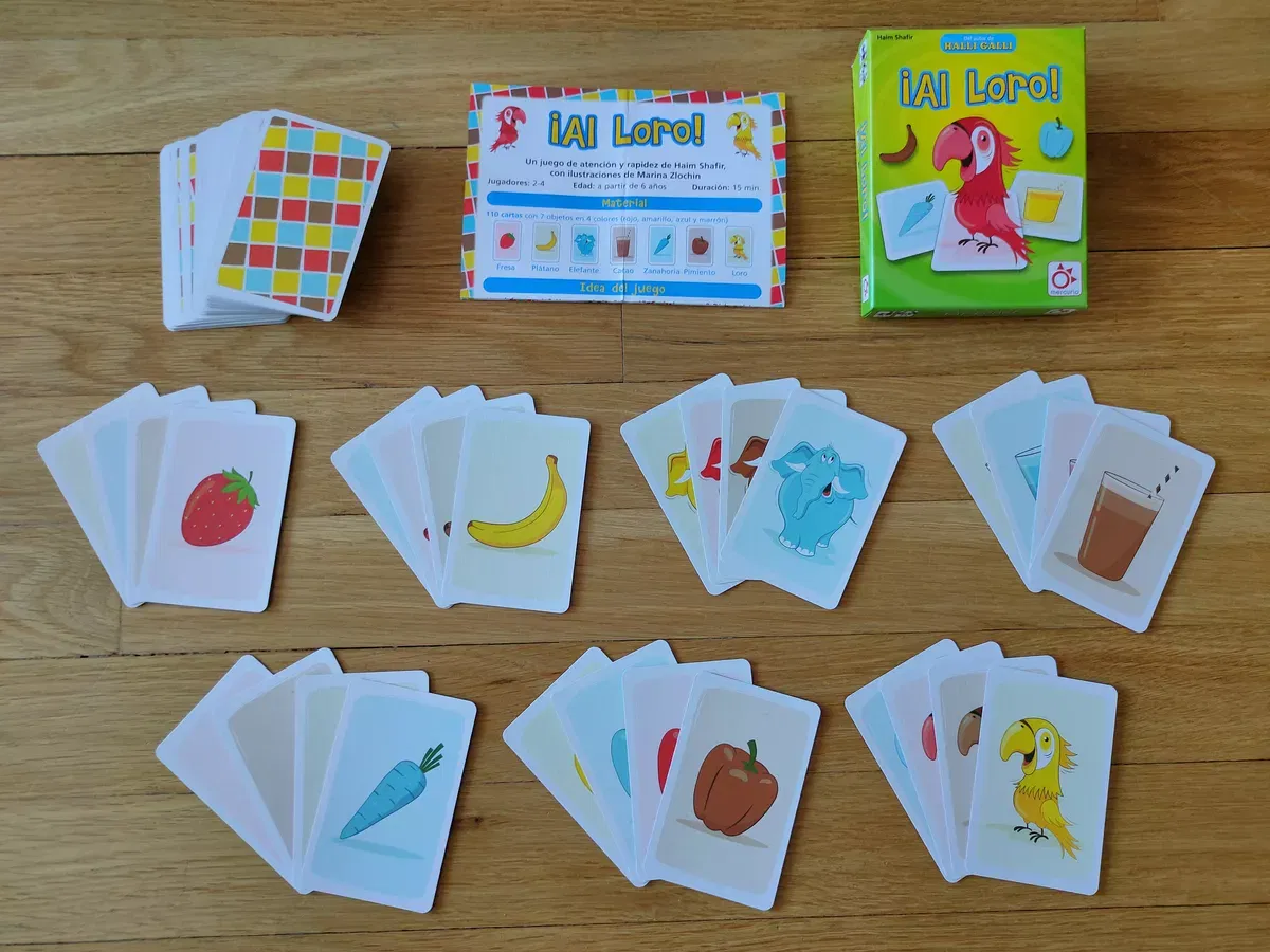 ¿un elefante rojo? claramente, ?ífresa ? es lógico, ¿no? porque los colores de las cartas indican qué palabra se pronuncia al colocar la carta. Puedes ganar cartas con rapidez si los dibujos son iguales, pero ojo con el loro, que creará más confusión. Un divertido juego de reacción que pone a prueba tu concentración.
