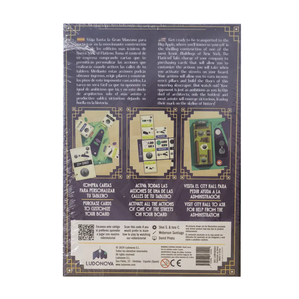 En Flatiron te trasladarás a la Gran Manzana para participar en la construcción de este icónico edificio. Tanto tú como tu oponente tendréis que ir desarrollando vuestras empresas añadiendo nuevas cartas a vuestro tablero personal, de manera que podáis realizar más y mejores acciones en cada una de las calles aledañas. El objetivo final será obtener más puntos de victoria que tu rival, estos puntos los conseguiréis principalmente realizando tareas de construcción, pero también manteniendo una imagen pública impecable y atendiendo a los decretos del ayuntamiento de Nueva York. Cuando se coloque el tejado y todo esté listo para la gran inauguración terminará la partida. La victoria y el reconocimiento solo se lo llevará el jugador que haya acumulado más puntos de victoria.