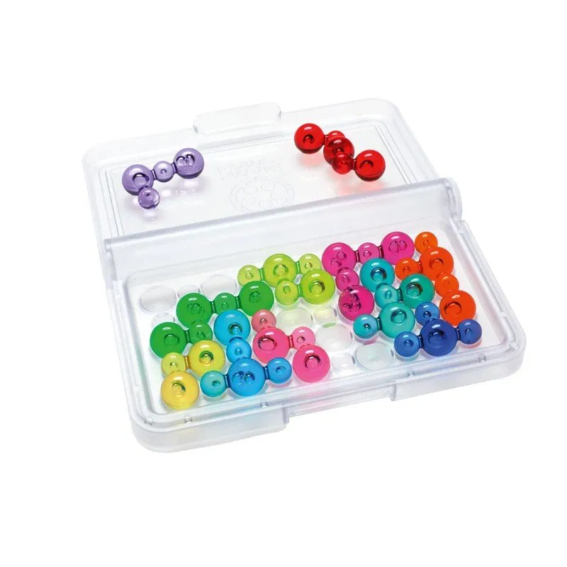 Tablero de juego compacto transparente ? 11 piezas burbuja ? libro con 120 desafíos y sus soluciones