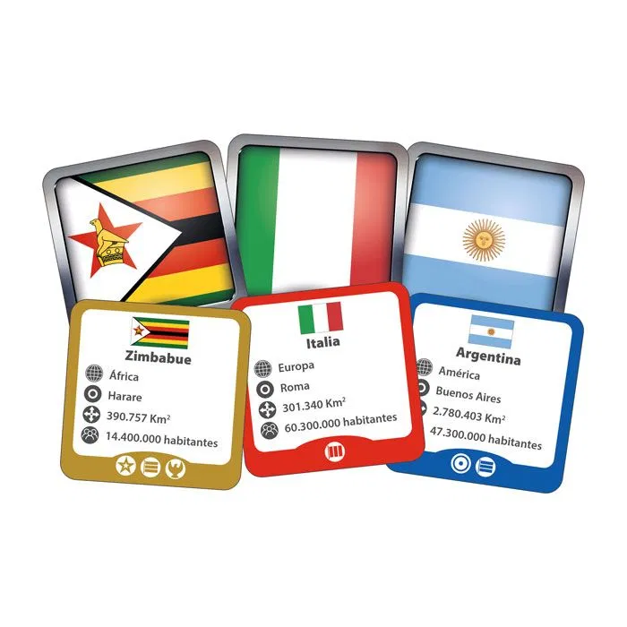 Se colocan al azar sobre la mesa todas las cartas del borde rojo, con la cara de la bandera hacia arriba.