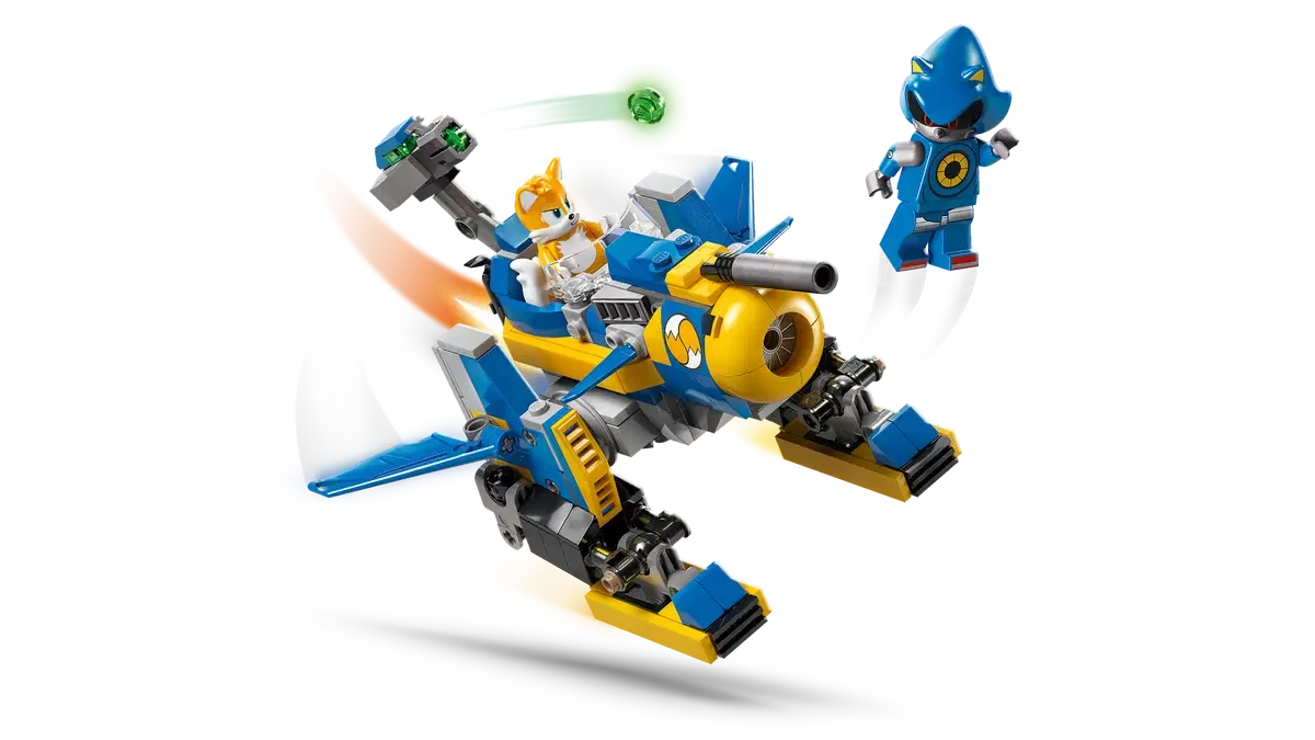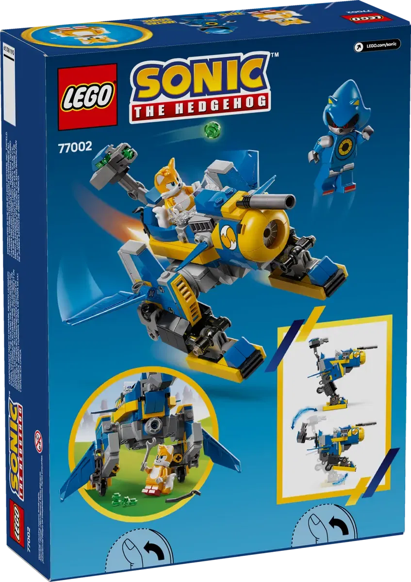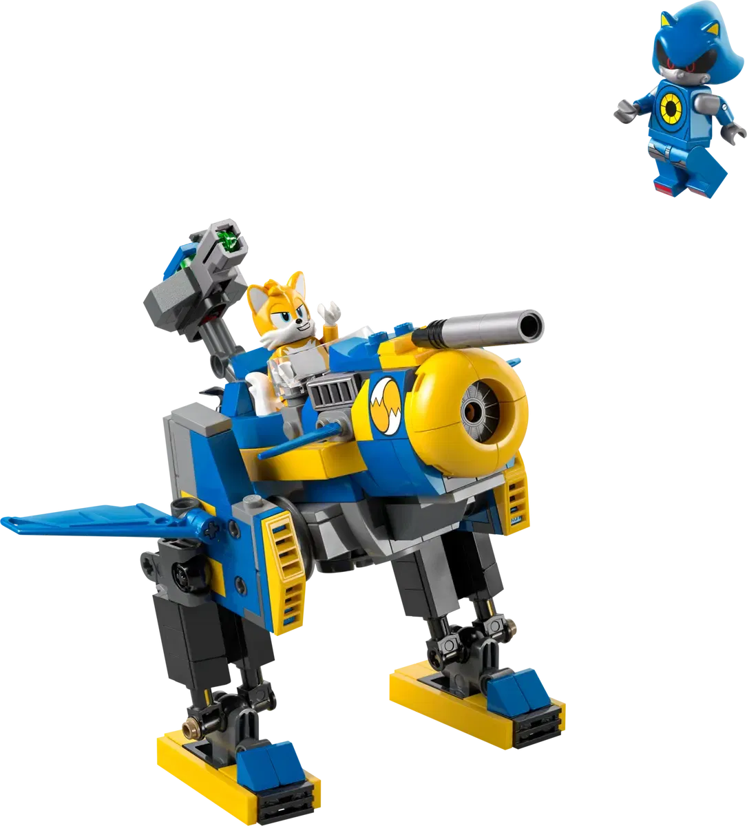 - Personajes de Sonic en versión de juguete: El meca de Tails de juguete cuenta con una cabina para una minifigura, espacio para almacenar las herramientas y una torreta articulada con cañón que dispara para defenderse de Metal Sonic en los combates