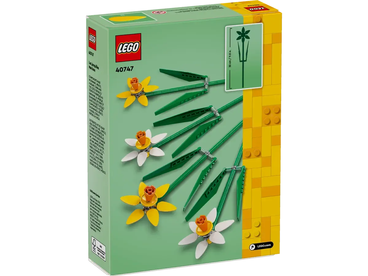 - Ponte a prueba como florista: Los narcisos pueden combinarse con otros sets de flores (a la venta por separado) para crear fácilmente un ramo LEGO® a medida