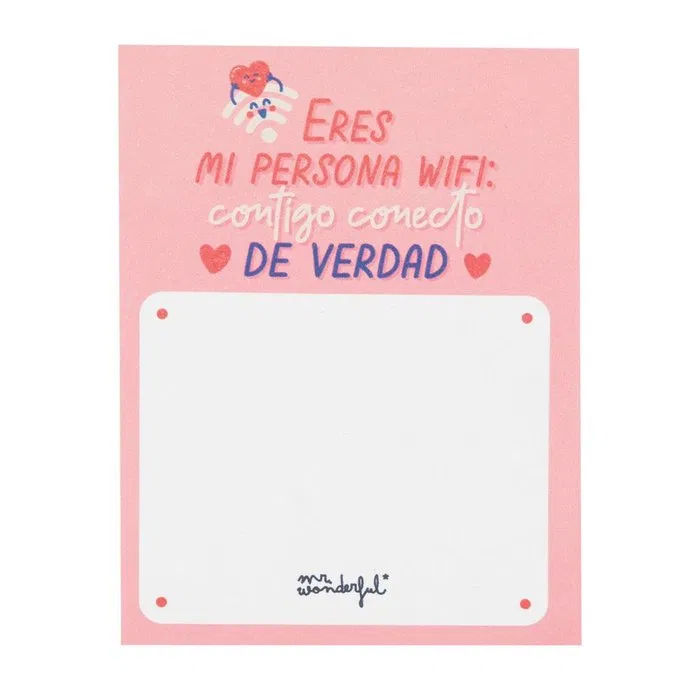 Bloc con 200 notas adhesivas fabricadas con papel de 80gsm, con mensajes de amor. Cuenta con 10 mensajes y diseños distintos que se van repitiendo a lo largo del producto. Con certificación FSC, que garantiza que ha sido fabricado con papel proveniente de bosques gestionados de manera responsable.