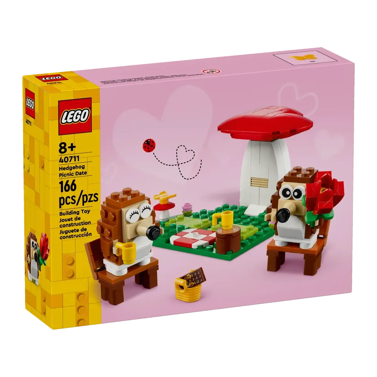Celebra cualquier ocasión especial con el adorable set de construcción de juguetes de animales Pícnic de Erizos LEGO® (40711), rebosante de divertidos detalles. Los niños y las niñas a partir de 8 años pueden construir, exponer y escenificar historias con los 2 modelos de erizo sentados junto a una seta en forma de corazón sobre una base también en forma de corazón.