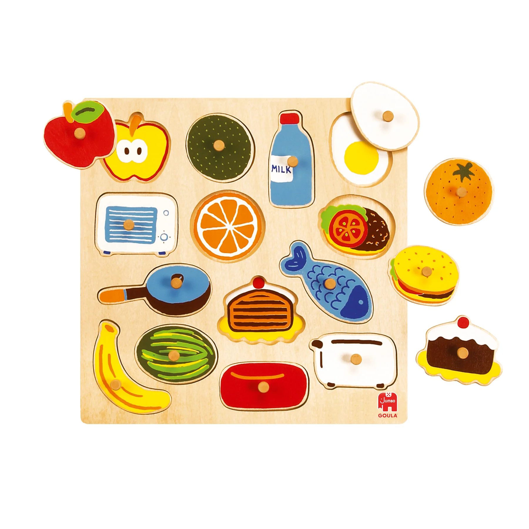 - Diseño: Piezas grandes y coloridas, fáciles de manipular, que encajan en un tablero, ayudando a los niños a entender conceptos de forma y espacio.