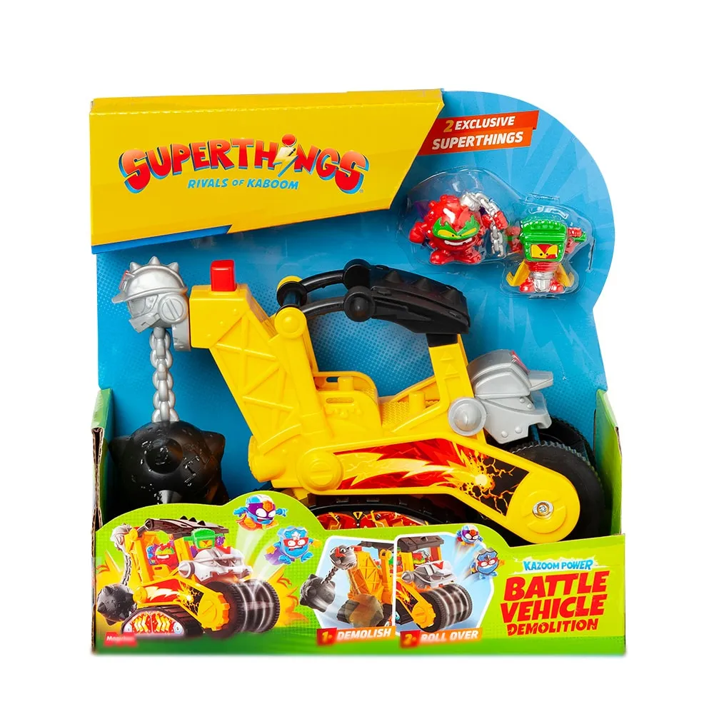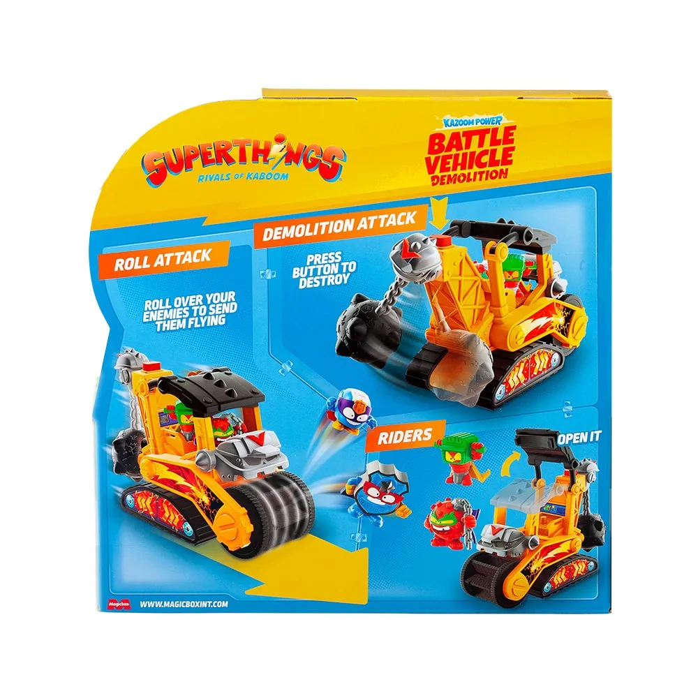 Los villanos saben cómo responder a los héroes con su Vehículo de Batalla Demolición. Usa la bola de demolición para destruir todo a tu paso y eliminar a los enemigos. ¡Y con la aplanadora frontal, puedes abrirte paso por los aires y lanzar a los héroes por los aires! ¡Incluye 2 Supercosas exclusivas para que nadie pueda detenerte! Colócalas en las 2 cabinas disponibles en el vehículo: una para controlar la bola de demolición y otra para la aplanadora. ¡Muévete hacia adelante o hacia atrás, tú eliges qué ataque usar!